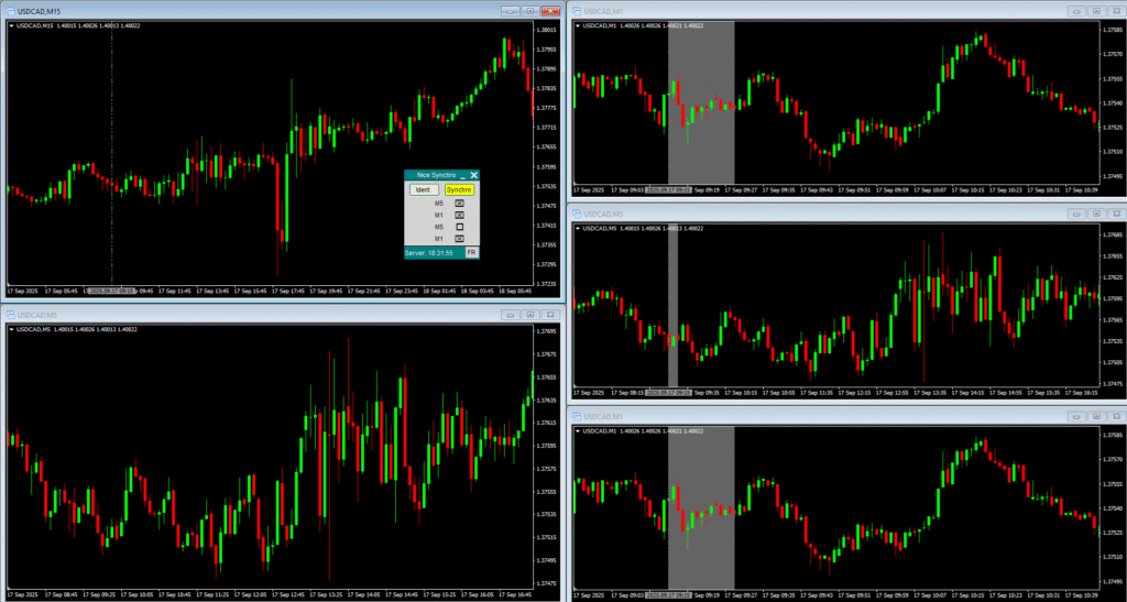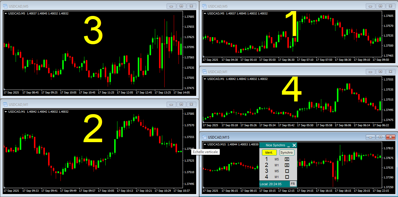 C’est Metatrader qui alignera les fenêtres sur la bougie en cours.